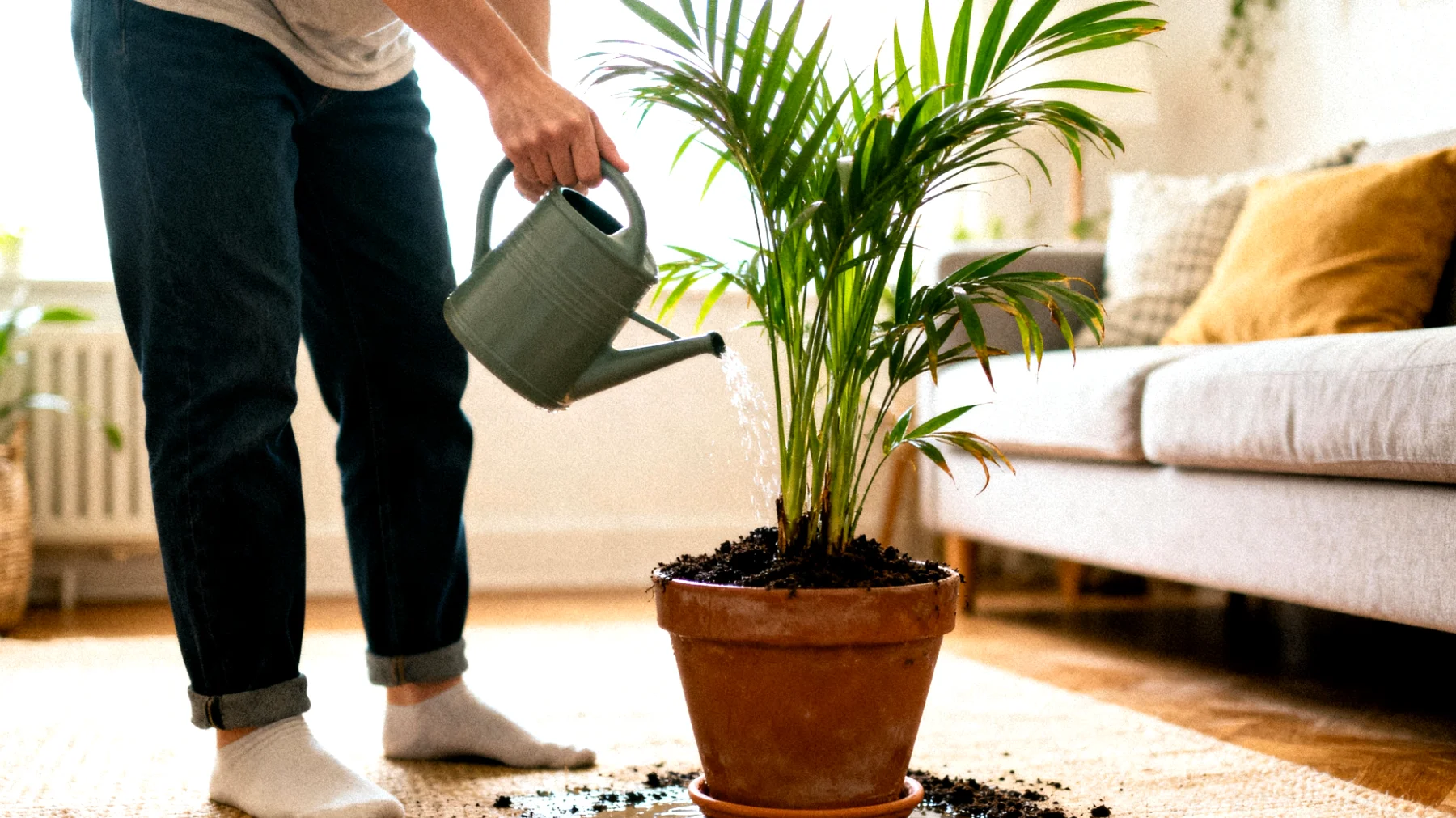 Stai uccidendo la tua Palma da salotto ogni volta che la annaffi: l’errore fatale che commettono 9 persone su 10